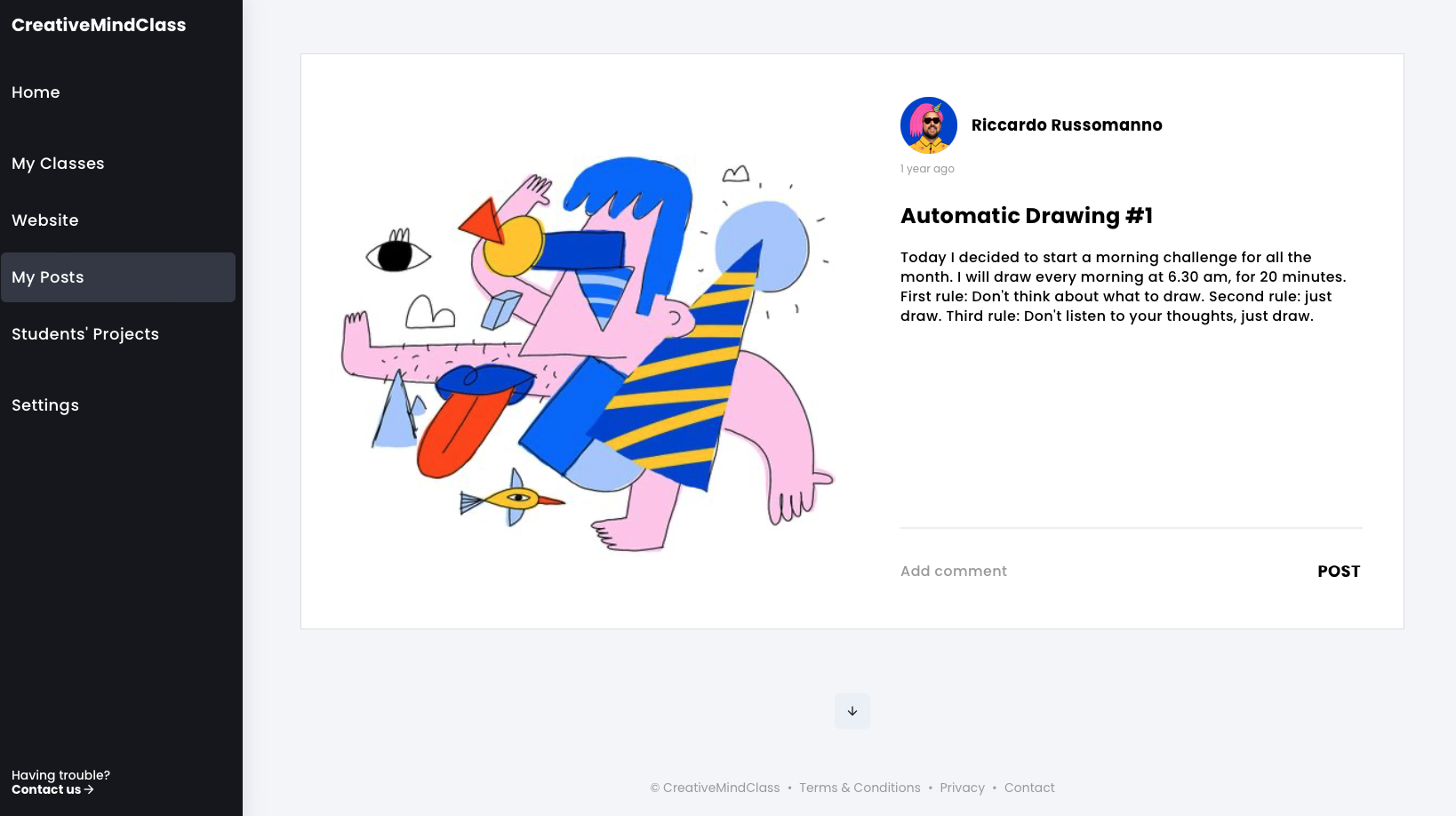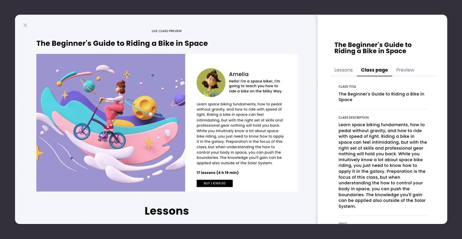 CreativeMindClass can be defined as an online platform on which you can access all the necessary instruments to market classes online to the general public and establish an online community for yourself. The charge control is completely yours over your class and the payments.