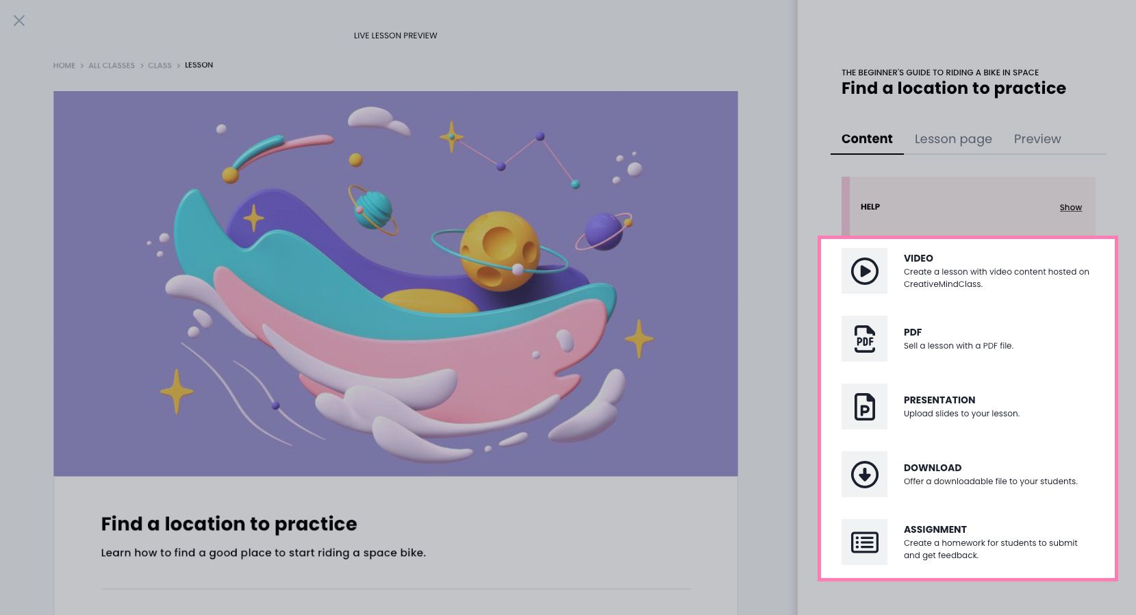 CreativeMindClass is a user-friendly platform which lets you provide online training courses.