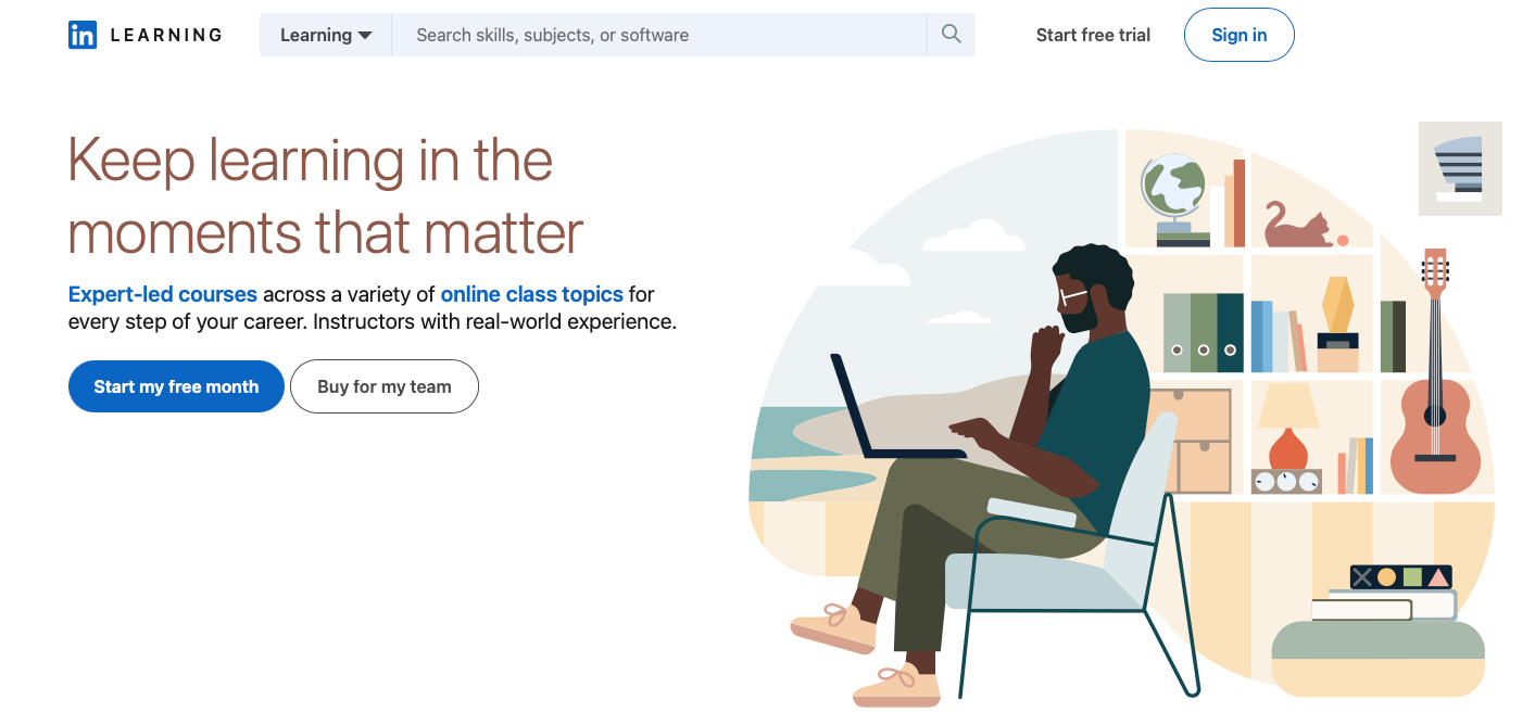 LinkedIn Learning: Best for developing professional and personal skills through online classes led by experts.