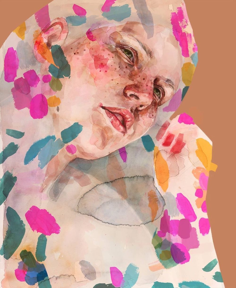 My work is very emotional. I create portraits of myself of the feelings I am feeling. I was always a very sensitive individual. Since I was a child there was something that made me feel uncomfortable , and I would try to get it out of my system. (...) As you mature and realize that it's alright and everyone feels differently. I decided to make use of my emotional energy that I carry into my daily life and start painting. It is a way to boost my creative juices and generate fresh ideas. This is astonishing because of the thing I had been pushing down all my life suddenly I put it down on paper, and it seemed like a great feeling of relief. There is finally the possibility to utilize this feeling, and I can use these emotions pleasures, hurts, and pains and put them on paper. The experience was truly wonderful and brought me back to my place that was filled with gratitude. It started resonating with a number of others too. I was opening the door and writing things down onto paper that I had never thought of before. In lieu of trying to be the same as other artists who have already "made it" I listened to what I want to convey and who I am as an individual. I accepted something I did not like about me and realized that it was actually my greatest strength. I'm really content being my true sensitive self.