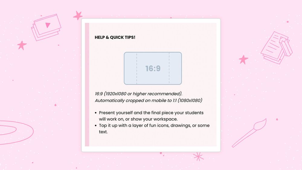 Updates for the teacher dashboard Help and Quick Tips box. add images with the perfect ratio Upload winning video clips or create well-converting My Homepage content using the CreativeMindClass aid, advice and guidelines on best practices. You'll see the Help or Quick Tips sections at the bottom, inside of the edit fields for any of your content.