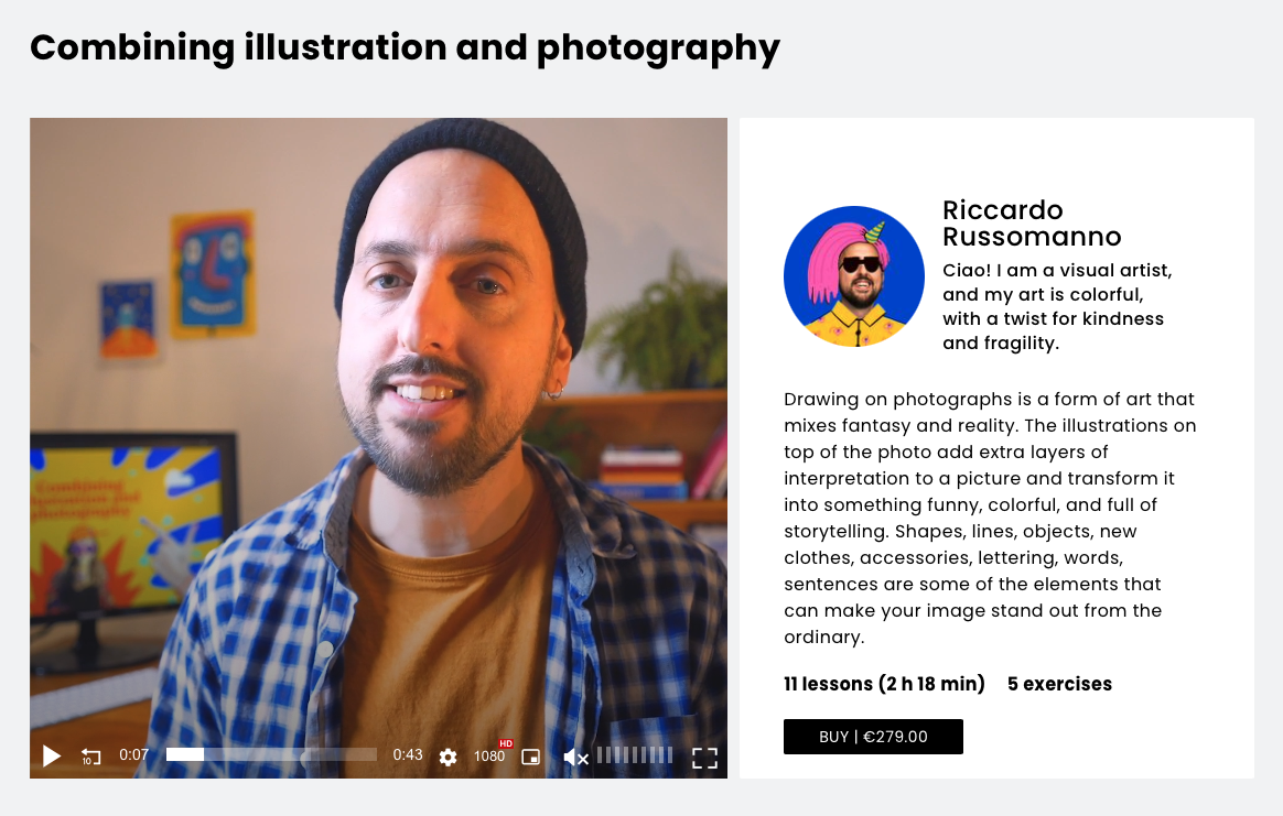 In general, a mini course doesn't require any additional educational materials. However, if you think of offering more value to the people who attend your event, you could create some short exercises and provide some printables or downloads. Attach files with lessons plans as well as hands-on exercise, sketches, inspirations, cheat sheets or working documents like Adobe Photoshop PSDs or Illustrator AI.