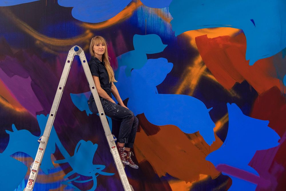 Nicole Mueller is an artist from San Francisco. Her works include large-scale painting as well as murals and installations inspired by the look from stained glass. Motivated by processes, her abstract works are vibrant and saturated. They are constructed using layers of collage-like patterns. Her work explores the complexity of color, states in flux, dichotomies inside painting, the fundamental transition of the human condition, and the boundary between interior and exterior, both tangible and intangible.
